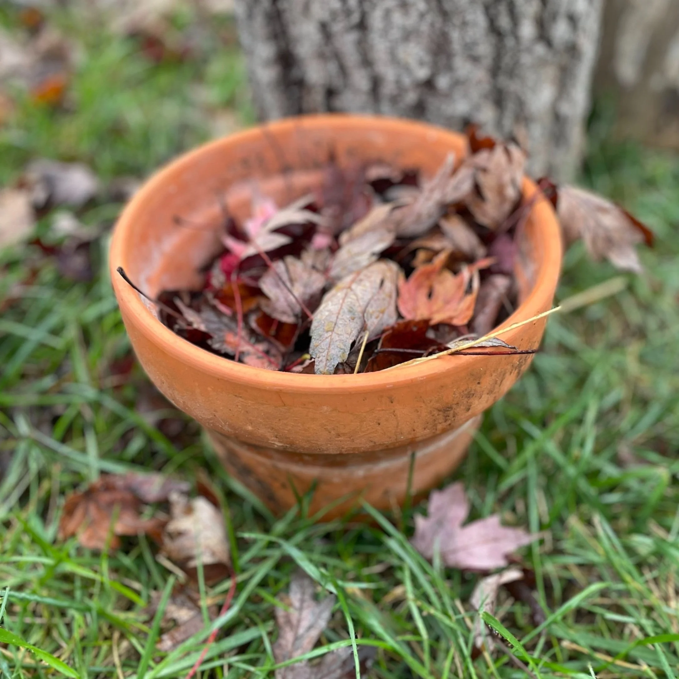 One of the joys of fall is jumping in leaves and throwing leaves. Leaves can also be great playing with in an outdoor kitchen.